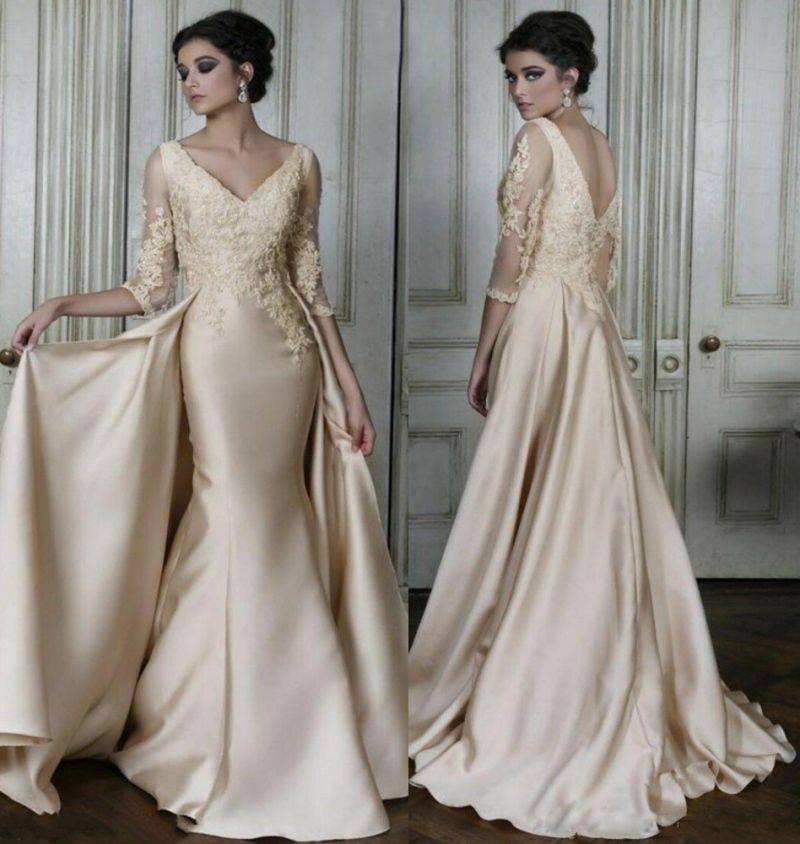 Champagne Lace Stain Mother Of The Bride Groom Dresses With Long Sleeve V Neck Women Formal Occasion Evening Dress Mother Party Dress Mother The Bride Dresses Mothers Bridal Dresses From Werbowy 108 55