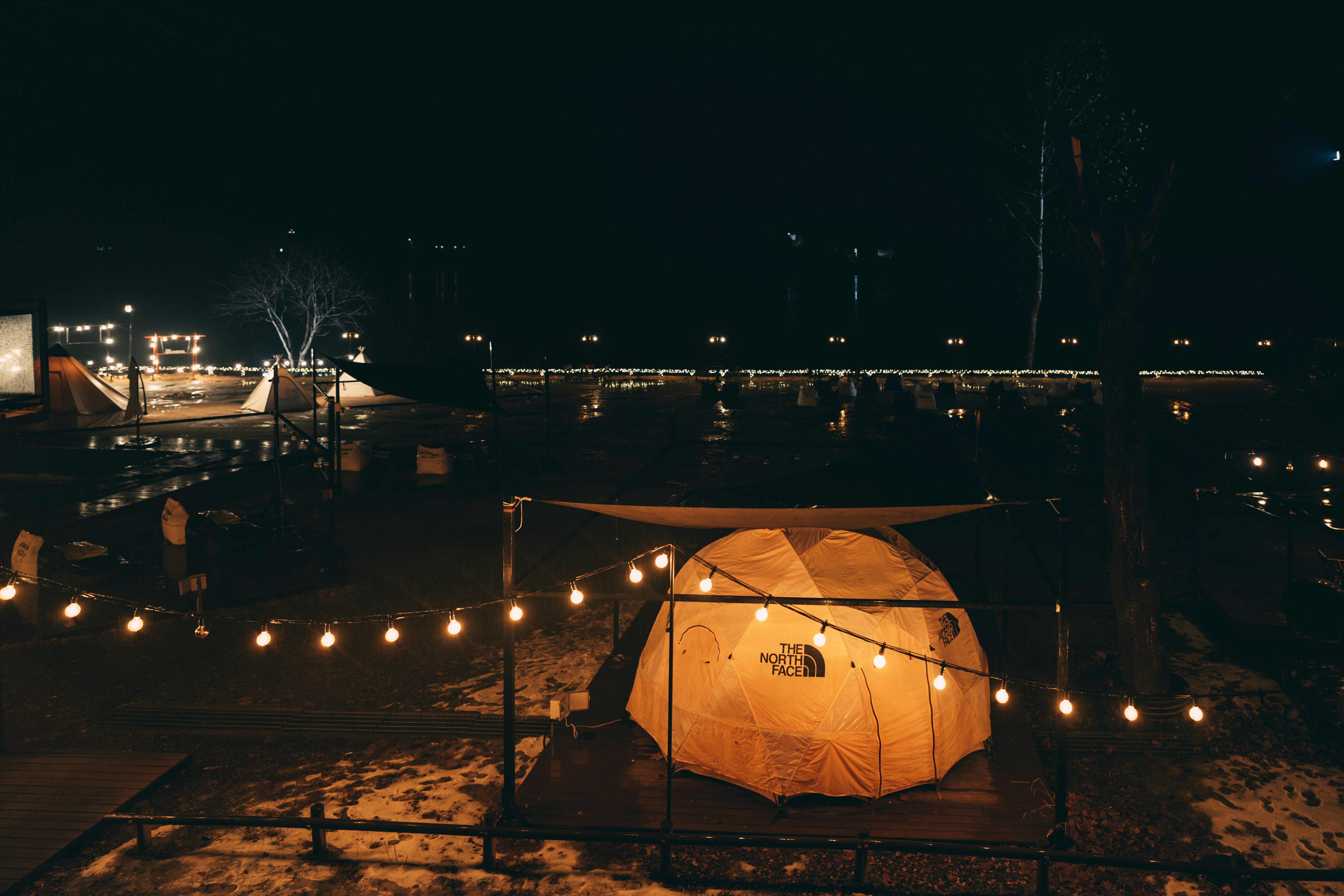 White Dome Tent On Gray Concrete Floor During Night Time Photo Free Camping Image On Unsplash